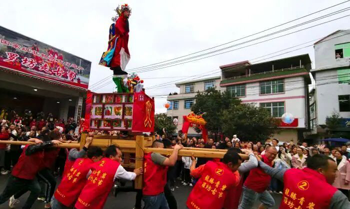 神铳鸣响,七棚古事竞逐登场 随着数声神铳轰鸣,罗坊乡七棚古事从街巷依次竞走而出,孩童扮成古时人物立在古事棚木栏上,村民们抬着棚子狂奔竞逐,街巷两侧欢呼声不断,热闹非凡。作为闽西客家元宵节庆代表,这项活动2008年列入国家级非遗,传承已有300多年历史。![走古事队伍在陆地竞逐狂奔]