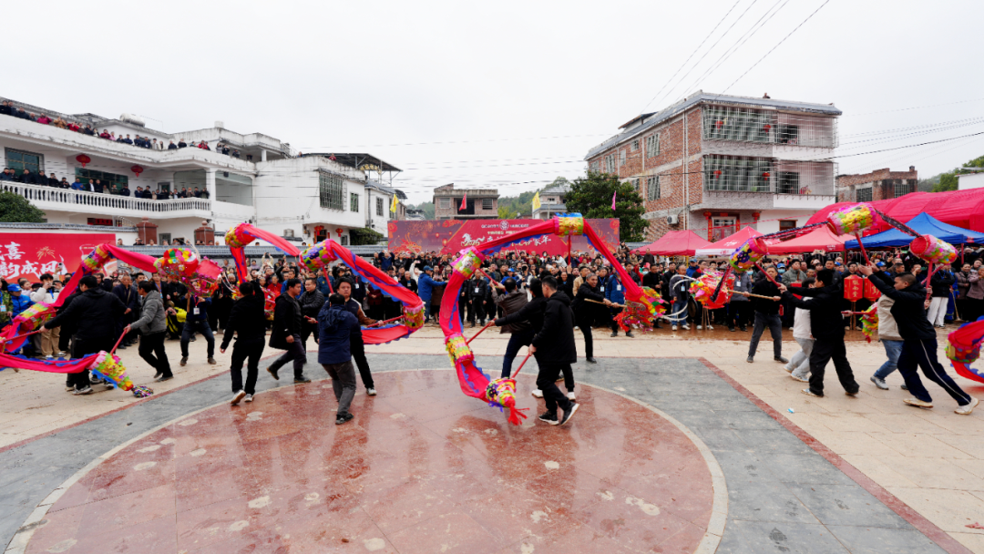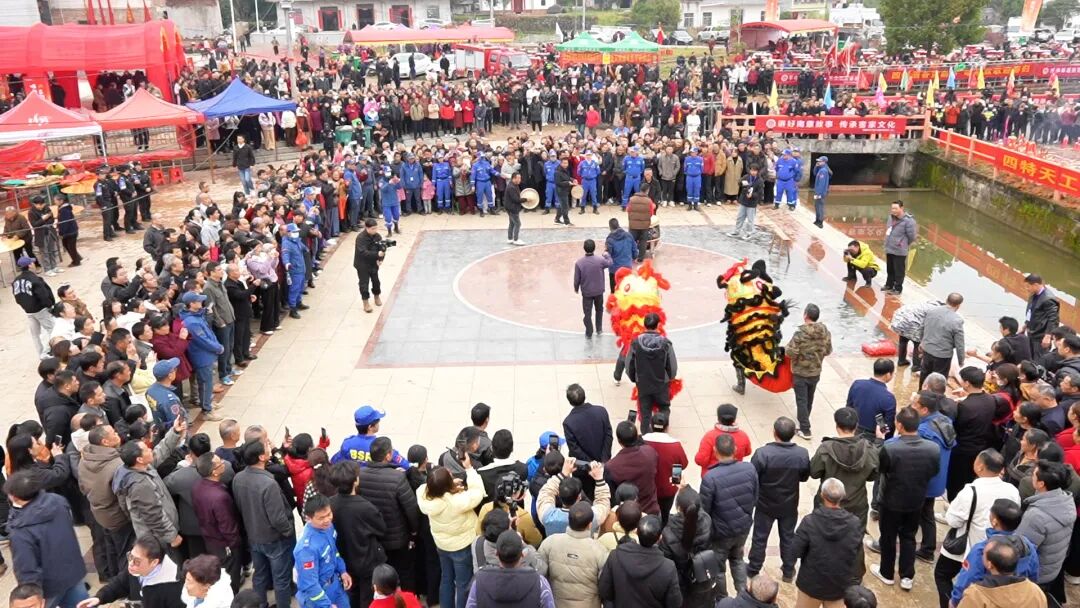 活动现场鼓乐齐鸣,龙狮共舞。祥龙昂首摆尾、穿游戏珠,经典招式轮番上演,引得众人阵阵喝彩,为整个活动增添了浓厚的节日氛围。
