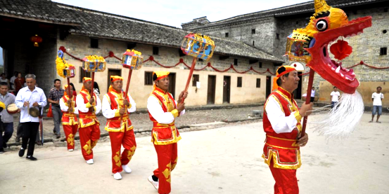 历史渊源:从劳动号子到艺术瑰宝 茶篮灯的根,深植于赣南悠久的种茶史。早在宋朝,安远九龙山已是江南著名茶区,至清康熙、雍正年间,九龙茶更成为贡品,吸引赣、粤、闽茶商云集。茶农们在劳作时传唱《十二月采茶歌》,后受春节元宵期间盛行的马灯、龙灯等灯彩影响,巧妙地将茶篮、纸扇等劳动工具化为道具,把歌唱与舞蹈融为一体,形成了最初的“茶篮灯”或“采茶灯”。这门艺术不仅是茶农自娱自乐的方式,更是他们用来招待四方茶商、庆祝丰收的独特礼仪。 艺术特色:一盏茶篮,万千风情 传统的茶篮灯表演通常由5人组成:1人饰演茶母,4人饰演茶女。表演内容生动模拟采茶劳动的全过程:众茶女告别茶母、结伴上山、入园摘茶、满载而归,最后常以摆出“天下太平”等吉祥字样收尾。其舞蹈动作提炼自劳动,如“采茶步子”轻盈活泼,“彩扇花”翻转似蝶,“转茶篮”优美灵动,生动再现了茶山丰收的喜悦场景。 音乐伴奏别具一格,以皮鼓、梆子、大锣、铙钹等打击乐为主,辅以客家特色乐器“勾筒”(类似二胡)和竹笛,节奏明快,富有生活气息。唱腔多采用《观礼》《春景天》《五月踩地》等本地小调,用原汁原味的客家方言演唱,婉转动听。 活态流变:从灯彩到戏台的升华 茶篮灯不仅是独立的歌舞,更是赣南采茶戏的摇篮。明代末年,艺人们在茶篮灯的基础上,增加简单情节和人物(通常为二女一男的“三角班”),发展出《姐妹摘茶》等采茶小戏,实现了从歌舞到戏剧的关键飞跃。这一演变脉络清晰勾勒出“茶篮灯—灯彩歌舞—三角班—赣南采茶戏”的发展路径,茶篮灯因此被视作国家级非遗“赣南采茶戏”的活态源头和原始剧目。