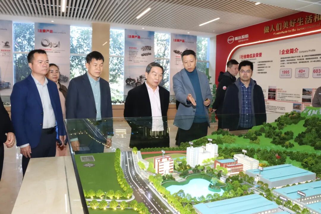 标杆参访:从桂花公社到福达集团的匠心启示 桂花公社内,考察团品尝桂花糕、桂花酒,了解市花产业链。副会长周彬龙当场提出合作构想:“可依托桂林桂花资源,复制中小学食材配送模式,打造特色农副产品供应链。” 福达集团的参观充满乡情温度。董事长黎福超与肖志钢同为陆川客属老乡,他亲自解说企业从零部件制造到布局文旅、冷链的转型之路。肖志钢感叹:“福达的务实创新,正是客属企业家‘敢闯敢干’精神的缩影!”