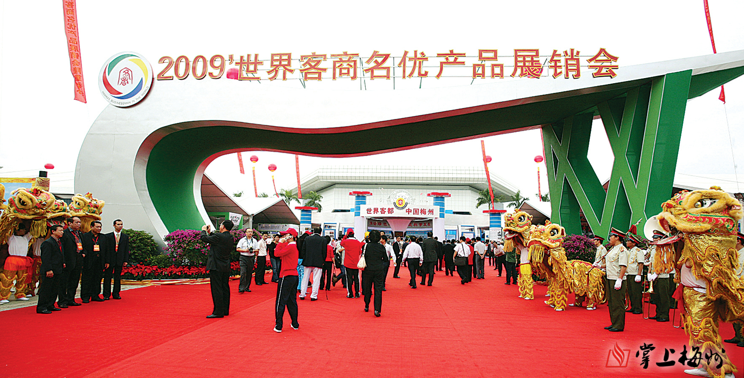 首届世界客商大会期间,举办世界客商名优产品展销会。(梅州日报资料图片) 2009年10月13日至14日,2009’梅州·世界客商大会在梅州举行,来自全球21个国家和地区的客商代表及领导嘉宾共1500多人参会。大会以“崇商论道、彰显卓越、联谊合作、共谋发展”为主题。大会宣读了《客商宣言》,表示要顺时代潮流、以知识为本、汲科技精华、强竞争能力、育世界品牌、创商海伟业,立高山气派、畅大海情怀、铸梅花风骨、展客家气概,“让中国为客商骄傲,让世界为客商喝彩”。 大会提到,希望广大客商充分利用世界客商大会这一平台,传承客家先杰“闯荡四海、敢于开拓”的创业精神,弘扬“福泽乡里、回报家邦”的优良传统,进一步凝聚力量,团结合作,共谋发展,使世界客商大会成为全球客属商界精英汇聚、世界客属地区合作发展的盛会。 其间,举办了世界客商名优产品展销会、经贸项目签约、世界客商高峰论坛等活动,并宣读了《关于聘请梅州·世界客商大会顾问的决定》和《关于聘请梅州·世界客商大会荣誉主席、名誉主席、荣誉顾问、名誉顾问的决定》,聘请时任全国政协副主席、中华全国工商业联合会主席黄孟复,全国人大常委会原副委员长许嘉璐,全国政协原副主席叶选平,中华全国归国华侨联合会原主席林军等四位同志为顾问;聘请曾宪梓等66位知名客商为荣誉主席、名誉主席、名誉顾问。 第二届世界客商大会 举办时间:2011年12月4日至6日 主题:彰显客商精神 共谋合作发展