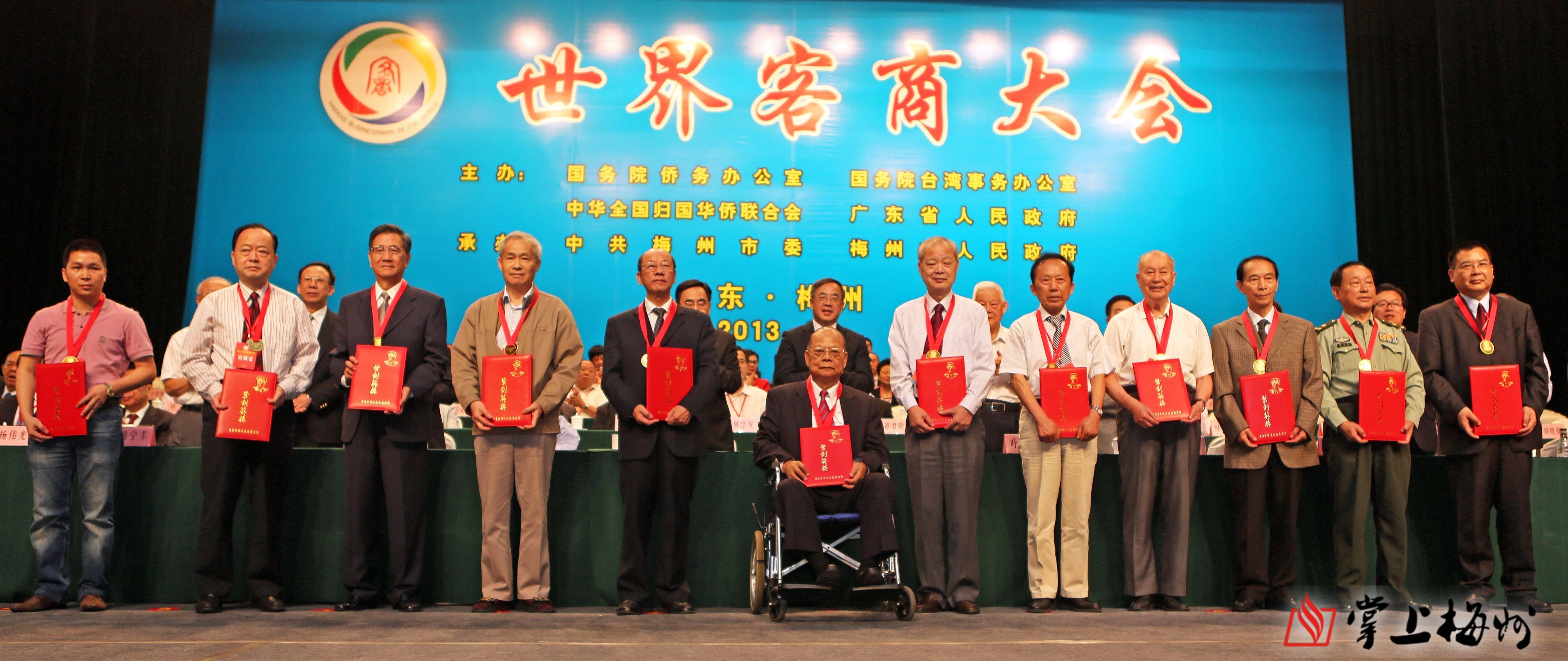 第三届世界客商大会上,首届“叶剑英奖”授予著名慈善家曾宪梓、田家炳及王佛松、汪懋华等14位梅州籍院士。 (高讯 摄) 第三届世界客商大会于2013年9月21日至23日在梅州举行,由国务院侨务办公室、国务院台湾事务办公室、中华全国归国华侨联合会、广东省人民政府主办,梅州市委、市政府承办。来自美国、法国、澳大利亚、南非等14个国家和地区,国内14个省(区、市)和省内21个地级以上市的客商代表等共900多人参加大会。 本届客商大会以“融汇世界的客家,展示客家的世界;天下客商是一家,携手共筑中国梦”为主题,旨在更好地弘扬客家精神和文化,凝聚全球客商的力量,推动客属地区共赢发展。主要活动包括客商大会、招商引资项目签约、世界客商名优产品展销会、客商投资成果展、世界客商论坛等。 开幕现场共有客属地区的70个招商引资项目签约。其中梅州有56个项目正式签约,项目主要涵盖健康疗养、文化旅游、创意设计、生物医药、电子信息、新材料和新能源等领域。 与往届相比,本届客商大会注入了更多文化元素,更加注重展示和弘扬客家精神和文化。为表彰对国家、对社会、对梅州有重大贡献的梅州籍杰出人士和社会各界精英,本届大会举行了首届广东省雁洋公益基金会“叶剑英奖”颁奖仪式,授予著名慈善家曾宪梓、田家炳及王佛松、汪懋华等14位梅州籍院士“叶剑英奖”。 第四届世界客商大会 举办时间:2015年10月11日至13日 主题:汇聚客商力量 共创海丝未来