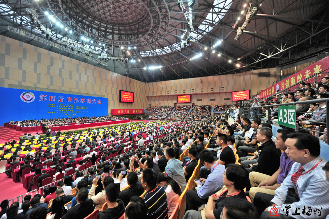 第四届世界客商大会,来自全球26个国家和地区共1000多人出席开幕式。(钟小丰 摄) 2015年10月11日至13日,第四届世界客商大会在梅州举行,来自全球26个国家和地区、国内18个省(区、市)、32个地级以上市的1000多名客商和嘉宾齐聚梅州、共襄盛举。 第四届世界客商大会以“汇聚客商力量,共创海丝未来”为主题,充分发挥梅州等客属地区华侨众多的优势,努力把世界客商大会打造成为广东落实国家“一带一路”战略、积极参与21世纪海上丝绸之路建设、进一步扩大对外开放的重要平台。梅州、河源、惠州在31个国家和地区的客属社团、商会设立经贸文化联络处,做到有人员、有办公场所、有依托机构、有活动经费、有职能任务,使联络处成为参与21世纪海上丝绸之路建设的桥梁和纽带。这次大会颁发33个“经贸文化联络处”牌匾。大会期间还举办了世界客商博览会,既有梅州馆和其他客属地区的河源馆、惠州馆、清远馆、韶关馆、赣州馆和龙岩馆,还有欧洲美洲馆、亚洲非洲馆、港澳馆和台湾馆,共有200多家海内外企业参展。梅州、河源、惠州、清远、韶关等市均有一批招商引资重大项目在大会上签约。 大会期间举行了梅州振兴发展主题展、客家文化创意产品博览交易会、客家文化艺术展演和曾宪梓博士足球捐赠仪式暨梅州振兴足球邀请赛,充分展示梅州“文化之乡”“华侨之乡”和“足球之乡”的风采。 第五届世界客商大会 举办时间:2017年11月13日至15日 主题:开放促发展 创新赢未来