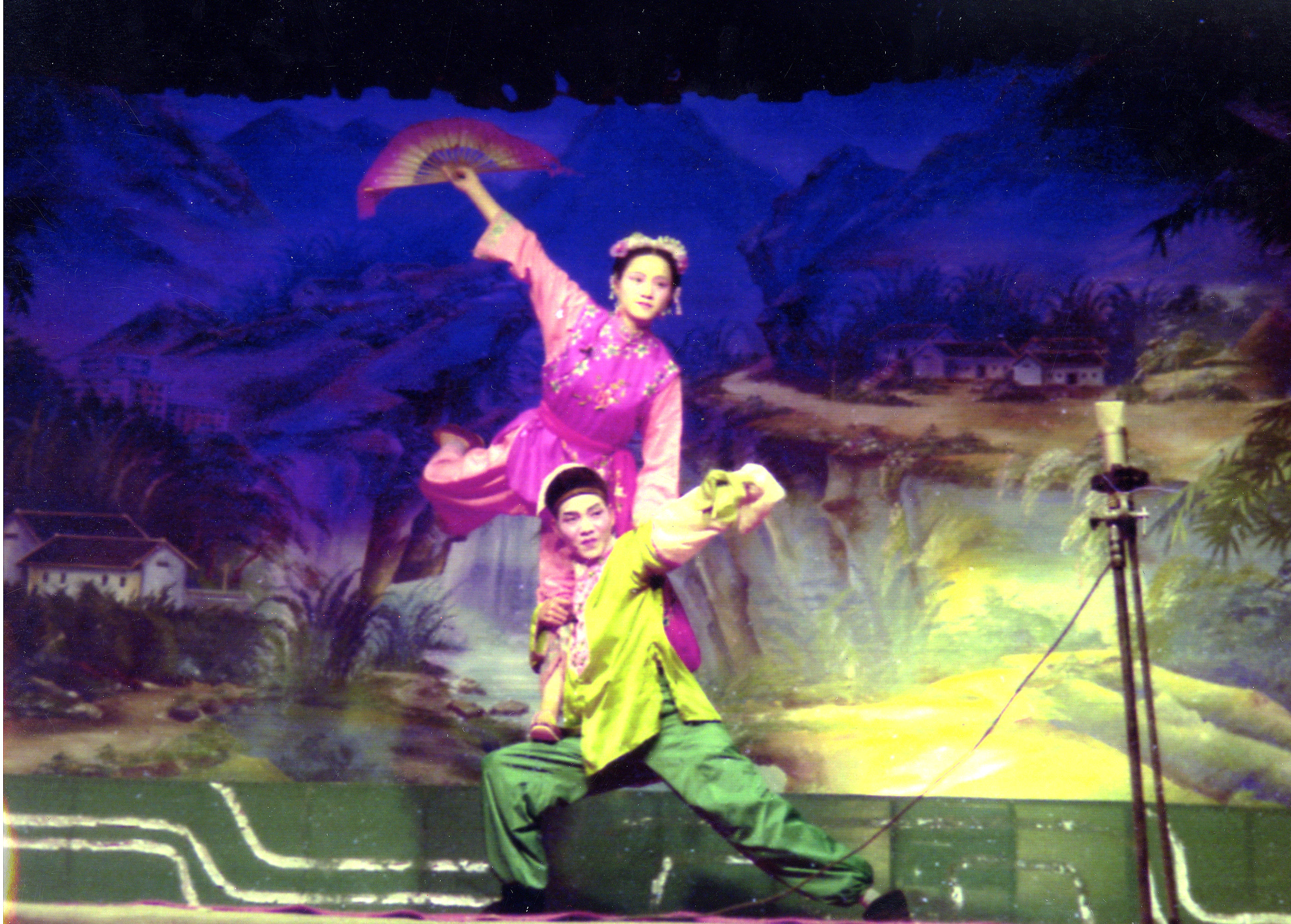 采茶传统戏,载歌载舞,热情洋溢。图为传统采茶戏《俏妹子》演出场景,并于1999年赴台湾表演(摄影:吴耀东) 【非遗档案】 非遗级别:广东省省级非物质文化遗产代表性项目 项目类别:传统戏剧 地域归属:广东省梅州市五华县 文化标识:客家方言戏剧、粤东采茶戏代表、“步子、袖子、扇子、手巾花”表演四绝