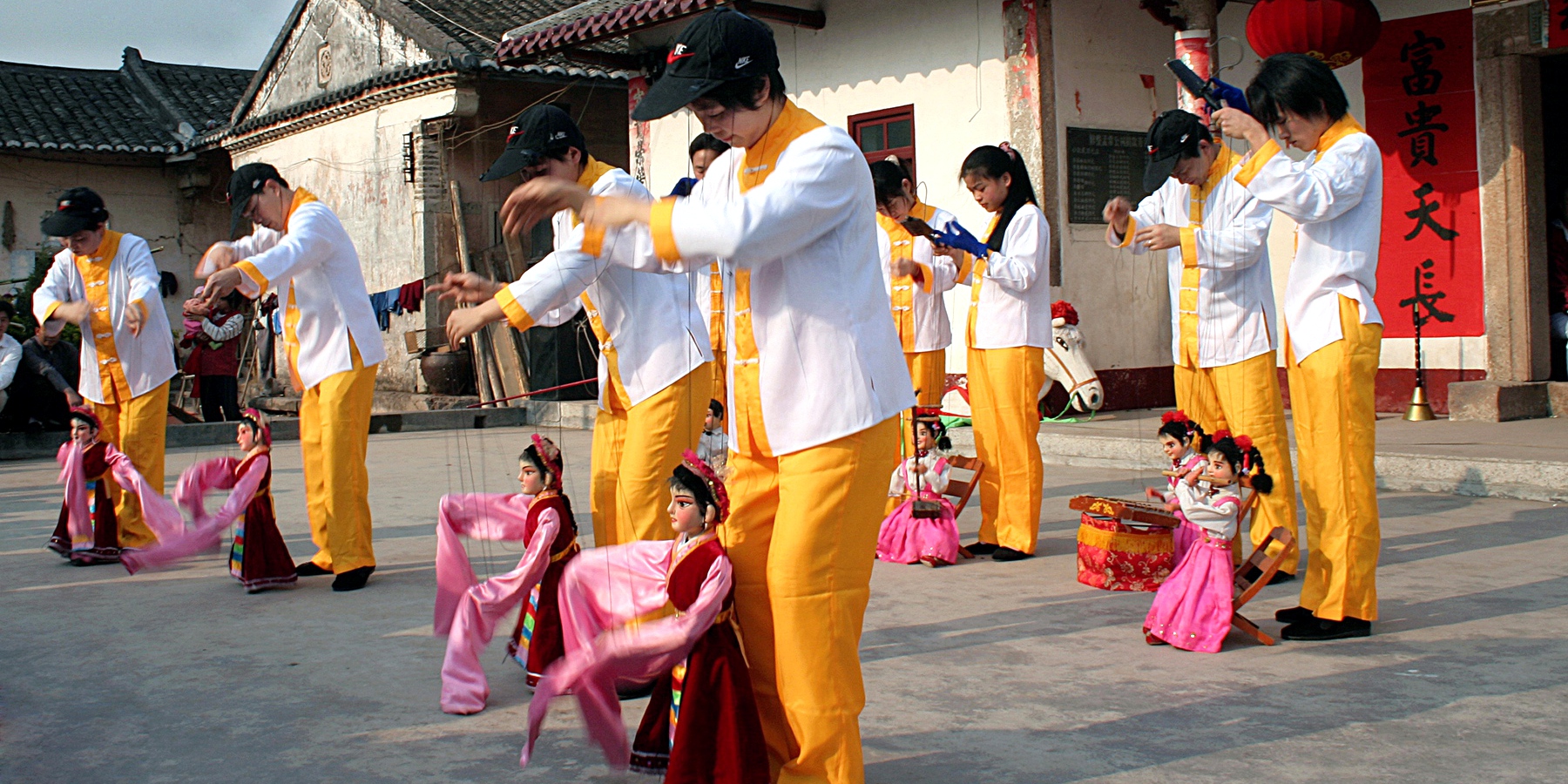 技艺与特色——“拟形入神”的客家绝活 五华提线木偶之所以独树一帜,首先在于其“大”而“精”。木偶形体高大,约90厘米,在提线木偶中颇为罕见,使其舞台形象更为突出。艺人通过14至20条丝线操控,赋予木偶鲜活的生命力,达到“拟形入神”的艺术境界。 其声腔更是一绝。演唱以汉调为主,这是客家地区具有代表性的古老剧种声腔,高亢悠远。演出中巧妙穿插客家山歌、采茶小调等本土音乐元素,对白则使用亲切的客家话,偶尔也用普通话,使得这门艺术既扎根乡土,又具有开放性和适应性。其剧目储备丰富,传统与新编剧目达106个,内容多取材于客家历史故事、民间传说与生活智慧。