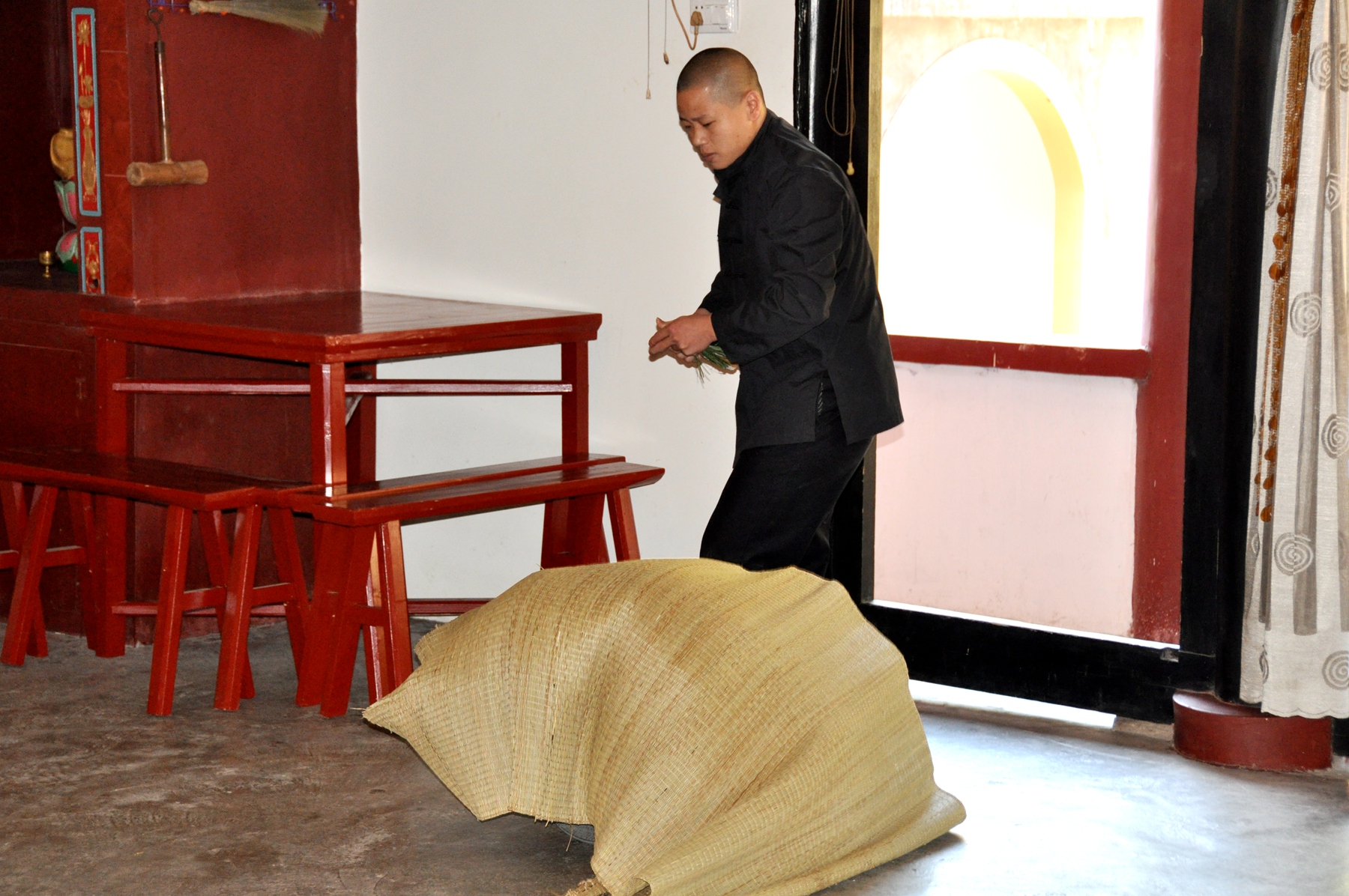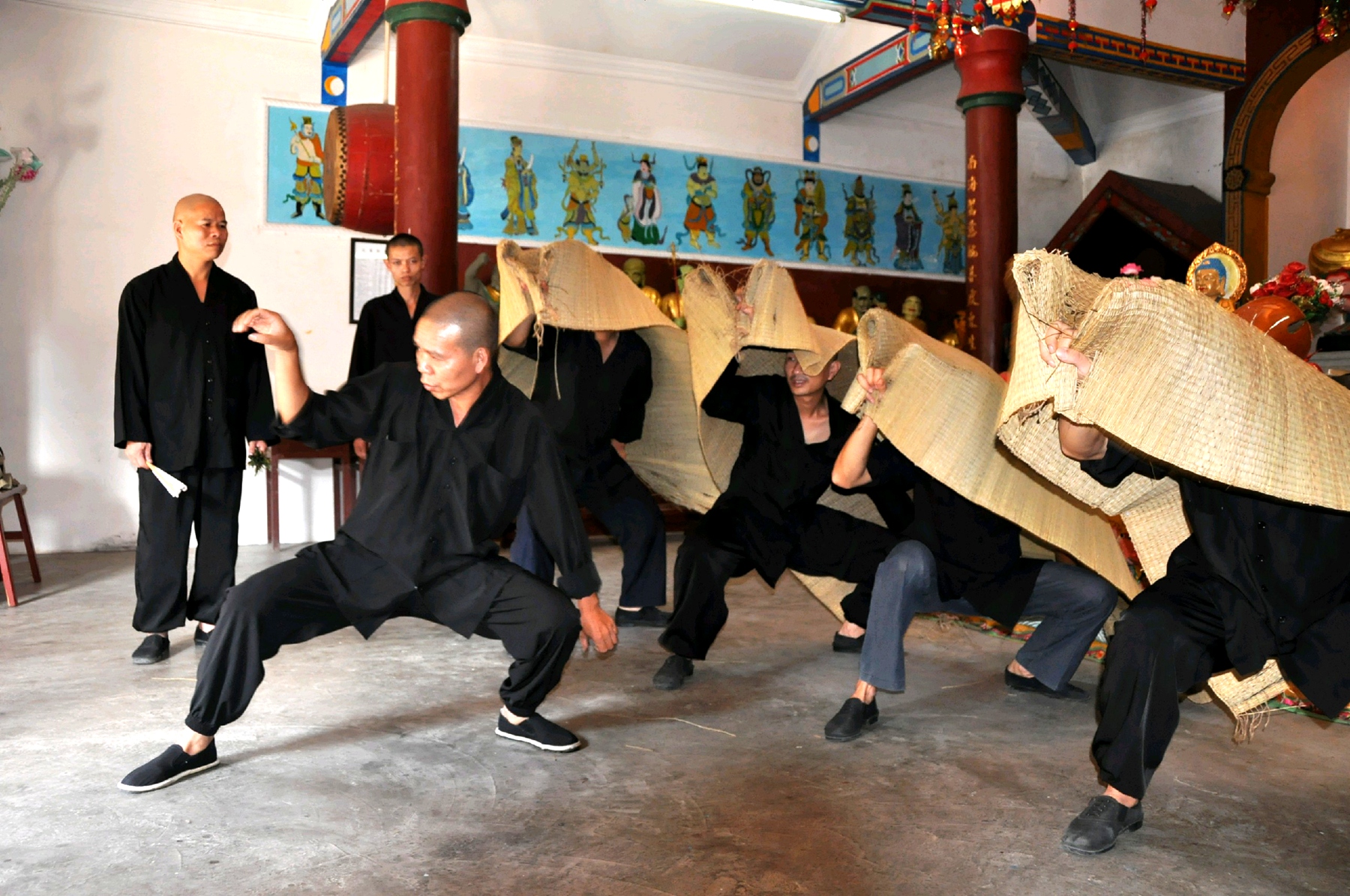 源起:佛事间的“游戏”,草席化灵狮 席狮舞的根,深深扎在梅州客家人特有的“香花”佛事之中。“香花佛事”是当地为亡者超度、为生者祈福的传统人生礼仪。僧尼在庄严肃穆的佛场间隙,为调和气氛、寄托祝愿,巧妙地发明了这种游艺。一张用于僧人起居的草席,随手卷扎,便成了舞动的“灵狮”。这不仅是艺术的创造,更是佛法世间化、仪式生活化的生动体现,让深奥的佛理与真挚的祝福,通过诙谐的舞蹈直抵人心。