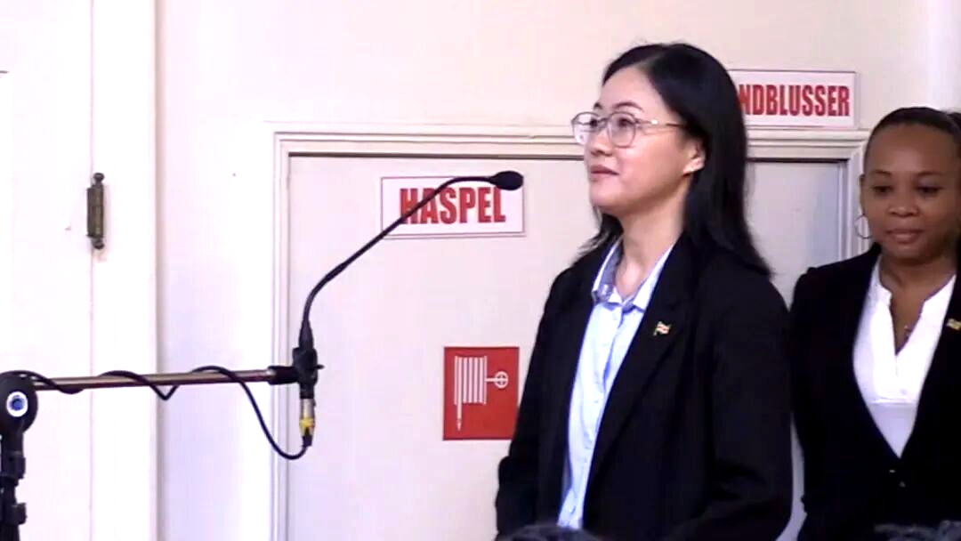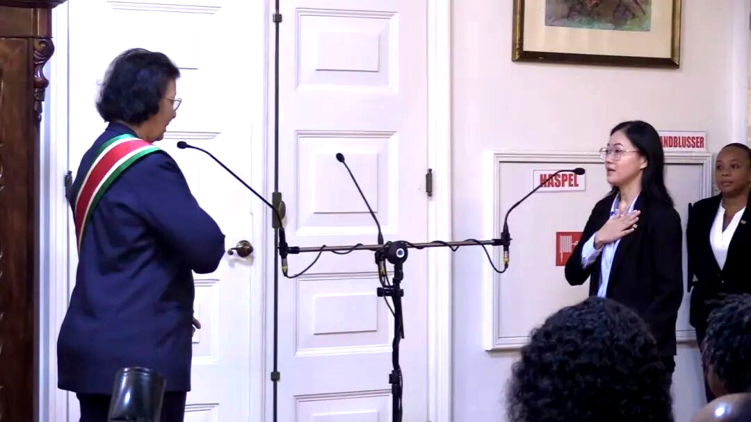 客家网 苏里南讯 当地时间2026年3月13日,苏里南总统府内,华裔客家精英李静宜面向珍妮弗・赫尔林斯 - 西蒙斯总统庄严宣誓,正式就任苏里南驻中华人民共和国特命全权大使。这一时刻,不仅是她个人外交生涯的崭新起点,更是苏里南客家侨界的荣耀时刻,客家文化的纽带再次在中苏两国间系紧。
