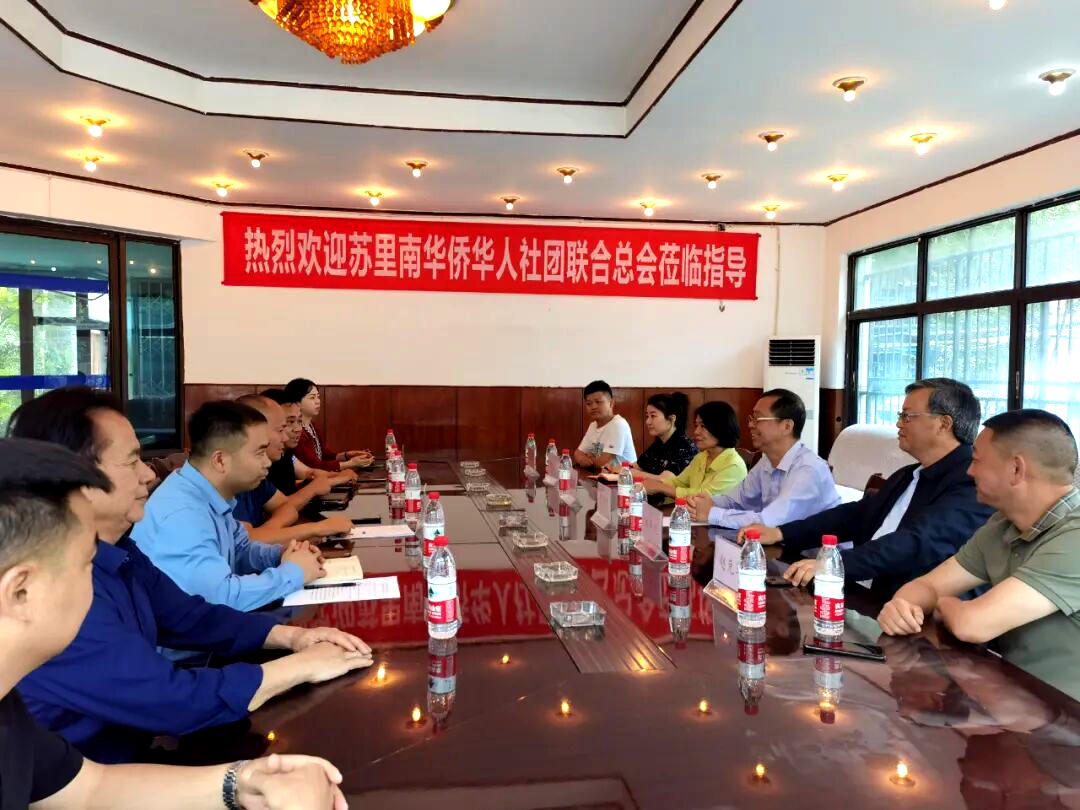 川苏客属紧相连,民间交流筑根基 苏里南客家侨界与国内客家社团的联结,从未有过片刻疏离,其中四川客家海外联谊会与苏里南华侨华人社团联合总会的友好往来,更是成为两地客属交流的典范。 早在2018年10月,四川客家海外联谊会常务副会长(现监事长)林亭先便携手全球客家崇正会联合总会代总执行长(现总执行长)曾观涛等远赴苏里南,与李学雄等当地客属侨领深入座谈。双方围绕客家文化传承、侨胞发展合作、民间友好交流等话题畅所欲言,为川苏客属交流埋下了友谊的种子。