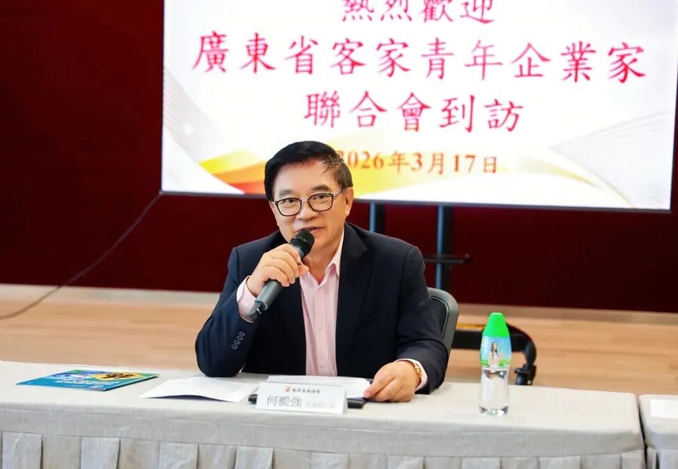 随后,何毅强介绍了总会基本情况及客家子弟奖助学金计划,该计划多年来助力数百名客家学子成长,培育爱国爱港爱乡新力量。他期望两团体加强常态化交流,携手推动客青发展、助力“十五五”规划实施。