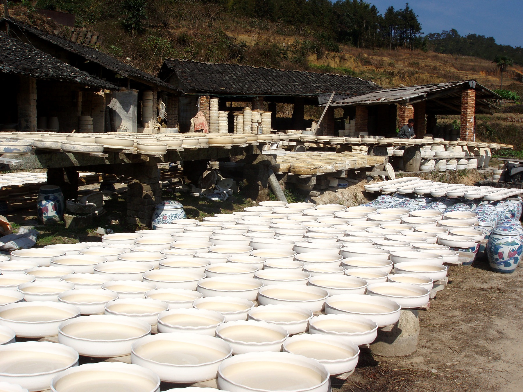 窑火缘起:光德瓷业的七百年根基 光德镇地处大埔南部,毗邻饶平,连接高陂、桃源,是客家陶瓷重要产区,全镇八成经济收入来自瓷业。 元明时期,当地水尾、园仔墩、窑山、下陶等村庄已兴起制瓷作坊,客家先民就地取材,烧制碗、盘、杯、壶等日用瓷,青花、云龙、花卉、人物纹样极具客家审美,逐步形成自成体系的手工制瓷技艺。