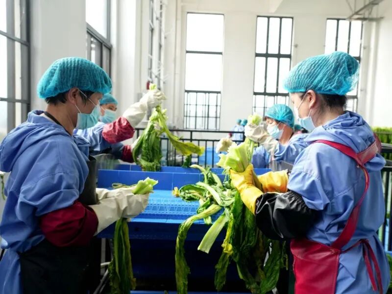 现场直击:老手艺走进新车间 在基地首栋厂房内,全自动化生产线高效运转,永定菜干依次完成清洗、漂烫、烘干等工序。依托标准化厂房、智能冷链与配套物流,实现从原料到成品全程可控、品质统一,彻底摆脱手工制作、靠天晾晒的局限。