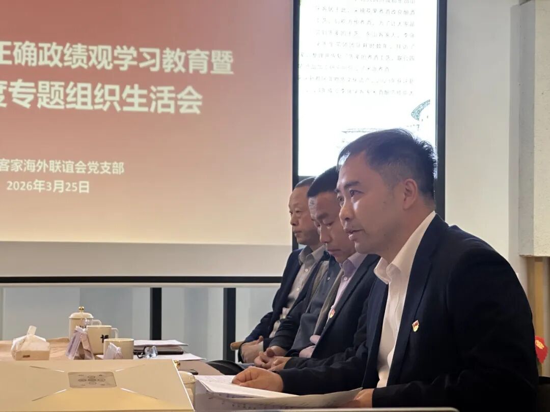 客家网 四川讯 3月25日下午,中共四川客家海外联谊会支部委员会召开树立和践行正确政绩观学习教育暨2025年度组织生活会,以高质量党内政治生活强化支部政治功能,推动党建与客家侨务工作深度融合,切实把学习教育成效转化为服务客属乡亲、助力四川发展的实际行动。 省侨联机关党委书记、二级巡视员余文彬,省侨联基层建设部、联谊联络部相关同志到会指导;支部全体党员,省客联会长林先富(流动党员)、理事会班子成员唐发杰、吴修明、张新成、钟培廷参会,发展对象、入党积极分子列席会议。会议由党支部书记、省客联执行会长兼秘书长郑勇主持。