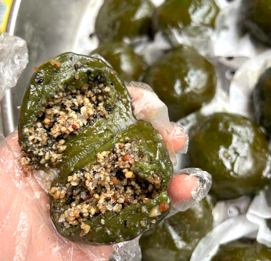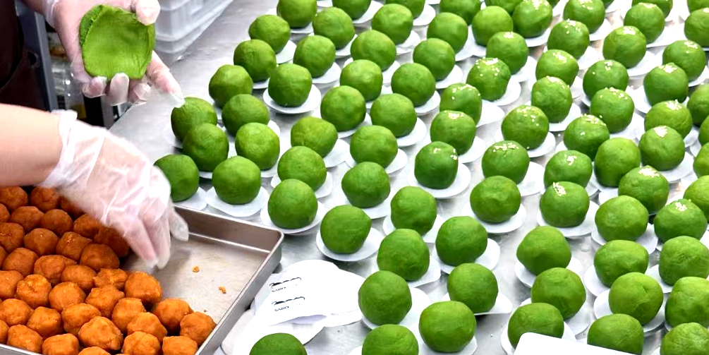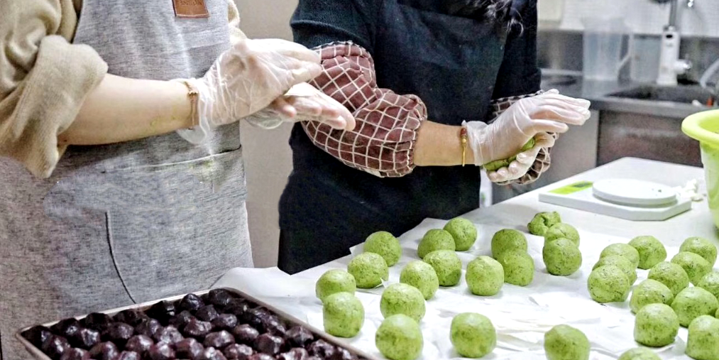创新口味,青团俘获年轻食客 梅城甜品店紧跟潮流,选用乡下土艾叶,推出咸蛋黄肉松、豆沙、芋泥等新式口味,其中咸蛋黄肉松最受欢迎。 店家表示,糯米点心造型难创新,便在口味上打磨,经典款与新口味兼顾。 日常日均销量200至300个,清明高峰可达500至600个,线上预订、同城配送、外地邮寄便捷,成为不少人馈赠亲友的特色手信。